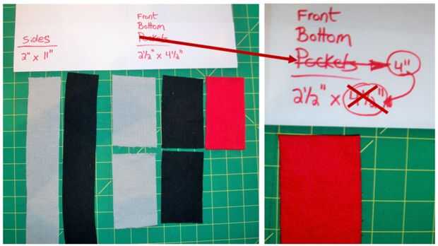 • Frontal de bolsillo 4 "x 2,5": 1 de tela bolsillo delantero. Corte en diagonal como se muestra en la imagen.