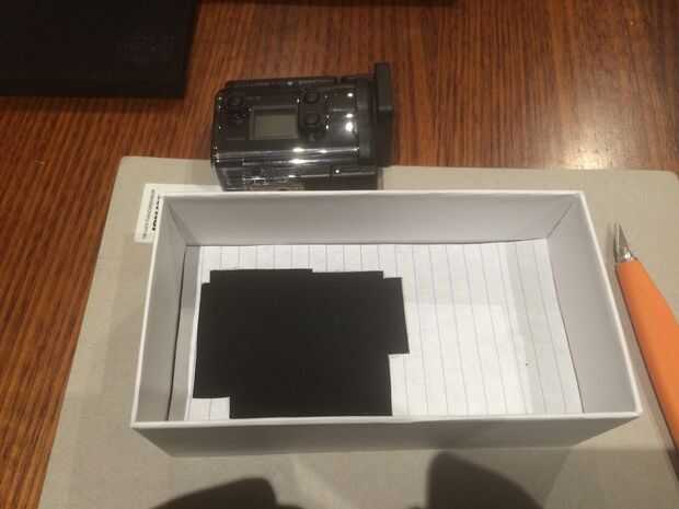 Una vez que estés feliz con la posición de la cámara, recortar la forma de la misma en el papel.