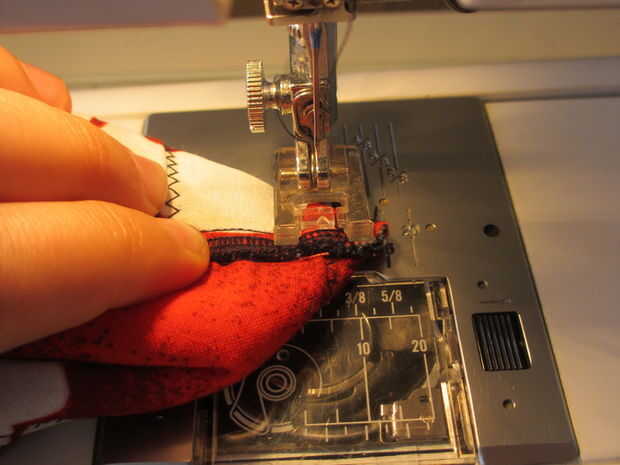 Una vez que su esquina costura correcta, restitch la costura con una puntada doble apretada, luego recorte el tejido sobrante de la esquina y terminarlo con una puntada en zigzag para dejar los bordes crudos de deshilachado.