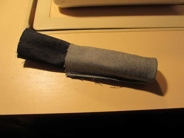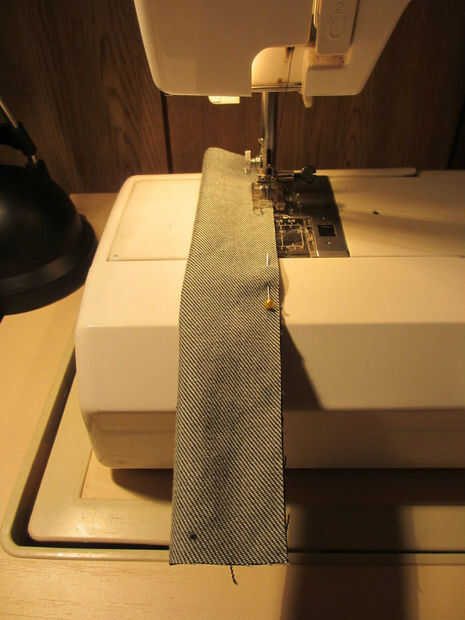 Es razonablemente sencillo para coser un tubo y luego gire al revés para usar como el lazo de correa, sólo asegúrese de que utiliza un tubo razonablemente amplio - el dril de algodón es muy difícil hacer de adentro hacia fuera para los tubos más pequeños. Una espiga o pluma es útil para el proceso de dar vuelta adentro hacia fuera.