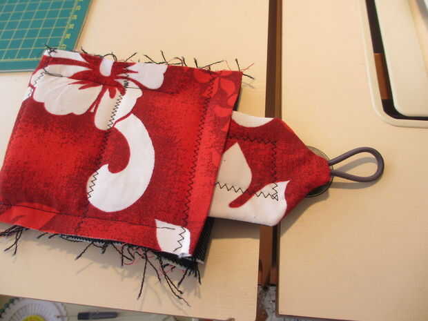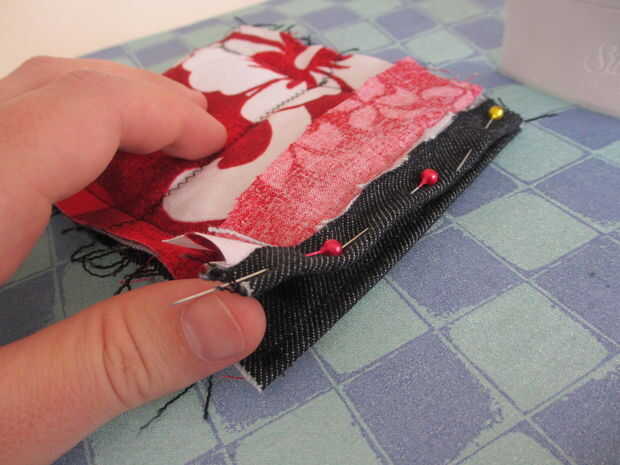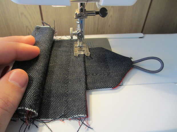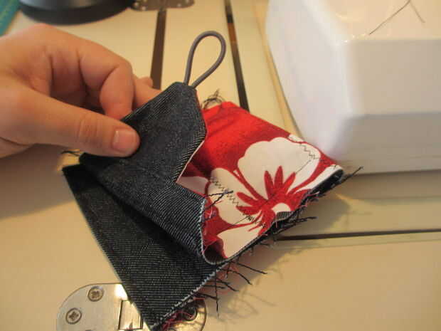 Si desea añadir un pasador de cinto, podría coser un extremo de la presilla dentro de la misma costura como el colgajo triangular. Tenga en cuenta que con dril de algodón, esto podría conseguir muy voluminoso. Quiere añadir el lazo antes de coser los lados.