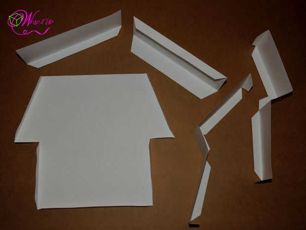 Doblar por la línea punteada y pegar juntos en sus lugares respectivos como se muestra
