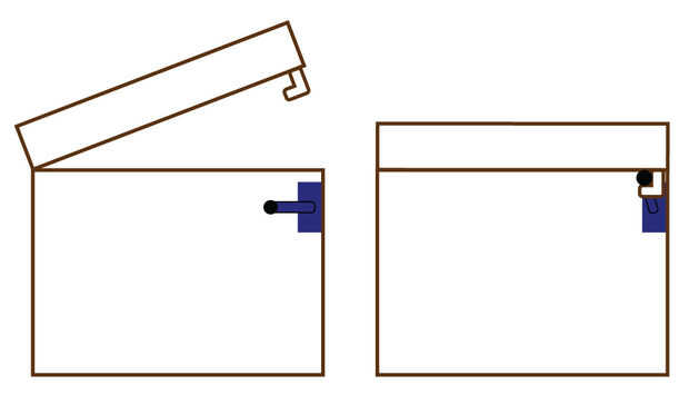 Esta es mi sección menos favorita, porque he tenido el problema más con él. Mis intenciones originales eran 3D impresión un servo accionamiento cerradura en mi universidad, pero por desgracia, debido a la rotura del invierno, no he podido. Intenté muchos métodos diferentes con los materiales a mi disposición, pero no estaba satisfecho con el resultado de cualquiera de ellos. Un amigo recomienda que haga la cerradura sólo un simple gancho de cierre en la tapa de la caja, y después experimenté con él, funcionó.