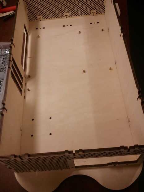 Ahora es el momento de atornillar todos los separadores para la placa base. Lo hice por atornillar un tornillo en el pilar, a continuación, utilizando un taladro para conducir el enfrentamiento en la madera. Por supuesto después de atornillar el cilindro en, quite el tornillo así que usted puede poner en la placa base.