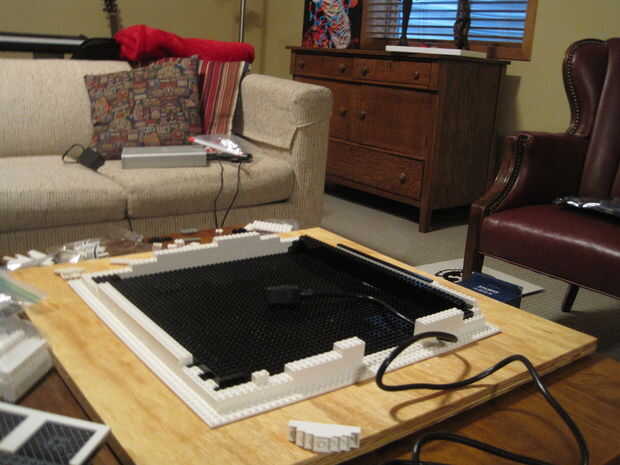 (lo siento no tengo alguna fotos de la placa base de lego a la madera pero es debajo de la capa de fondo blanco y negro)