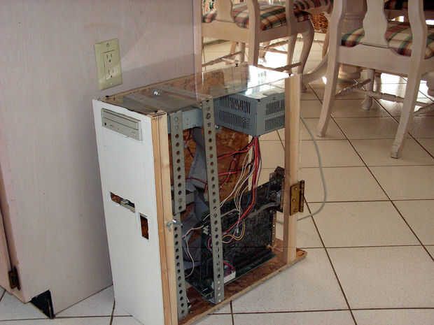 Ahora que tienes al menos unos minutos de experiencia corte lexan, puede intentar hacer el panel frontal. La primera cosa a hacer es crear una plantilla para averiguar donde hacer los agujeros de sus bahías. Lo hice usando el tablero de la espuma a utilizar como suplente, pero roble etiqueta o cartulina funcionaría igual de bien. En primer lugar, lo corte a las dimensiones adecuadas, 8" por 22" de alto. Uno a la vez, traza donde terminó el frente de sus unidades ópticas y la unidad de disquete. Después de quitar el plástico protector de la lexan podrá ver a través de la plantilla y trazar las ubicaciones de la unidad, aunque una regla y una escuadra también ayudan. Aquí también puede marcar los agujeros para LEDs, interruptores, o cualquier cosa que desee en el panel frontal.