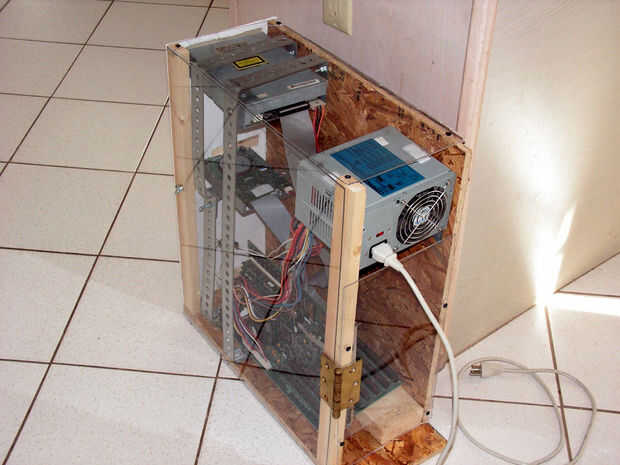 Para la placa trasera que utilicé una pieza adicional de lexan que corté uno de los paneles se rompió en el camino, pero la madera sería probablemente más fácil. (Especialmente para cortar las ranuras de expansión. En realidad, la placa trasera no es realmente necesaria, pero sin importar sería medir 8"~ 16". La dimensión tiempo puede variar dependiendo de cómo montar la fuente de alimentación.
