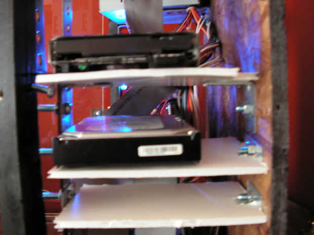 El siguiente paso es montar los soportes de 3.5" bahías. Esto puede hacerse en la misma forma que las unidades de 5.5" y debe encajar muy bien entre el marco y el panel lateral.