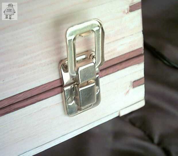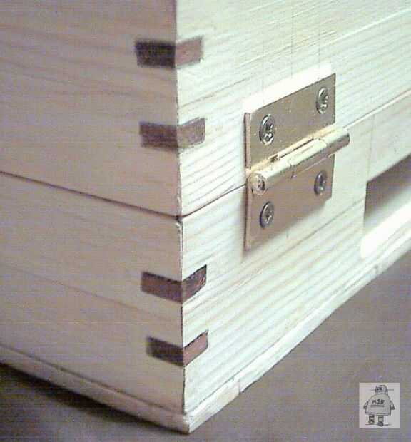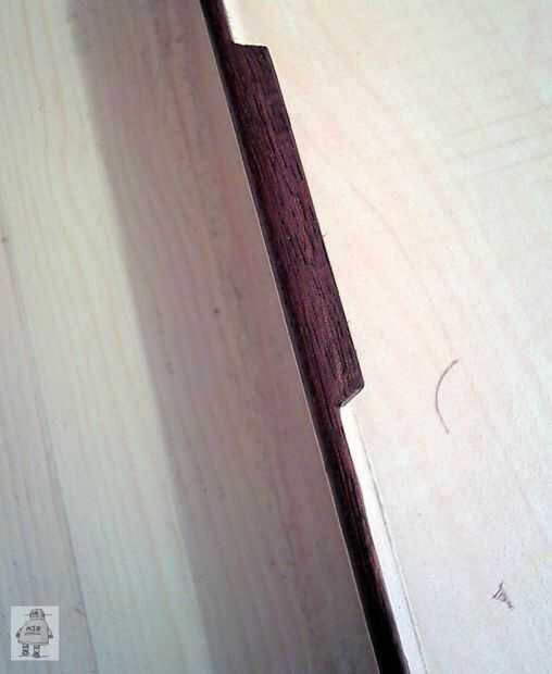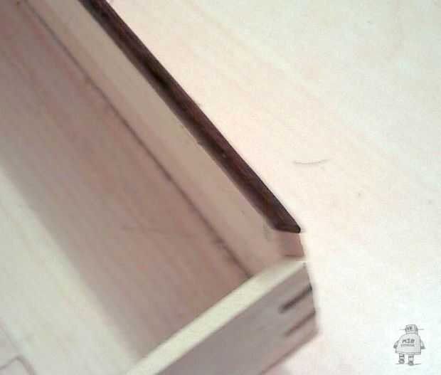 Se ha añadido una capa de madera oscuro "spline" correspondiente a la parte superior de la caja. Éste dispone de una ficha de mango cortada y lijada en él. Los extremos son mano-corte/lija para que coincida con la Mitra de la caja, así que no cuando se cierra la caja.