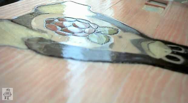 Luego se dejó por 5 días curar completamente, antes de ir sobre él todo ligeramente con mojado papel mojado o seco, para eliminar cualquier puntos altos y manchas. Esto en parte opacarán el acabado brillante.