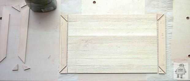 Luego añadí "protoboard" extremos. Esto oculta la veta de las juntas superior e inferior y los protege de daños. Se trata de 24mm cada uno, desde un pino. Además cortó y girar las esquinas de estas piezas a 45 grados para que no tengan ningún fin visible ya sea del grano.