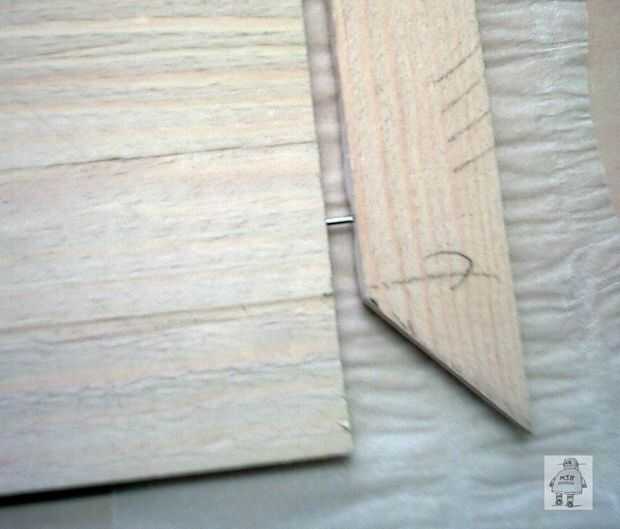 Pretaladrado pequeños agujeros para los pasadores y había aprovechado la madera en su lugar--y aclarando cualquier pegamento que exprime hacia fuera. Por último, poner en las esquinas de 45 grados, tras haber comprobado que no muestran el final de la madera! Sujete todo, ponerlo entre unas superficies planas y pesadas y esperar.