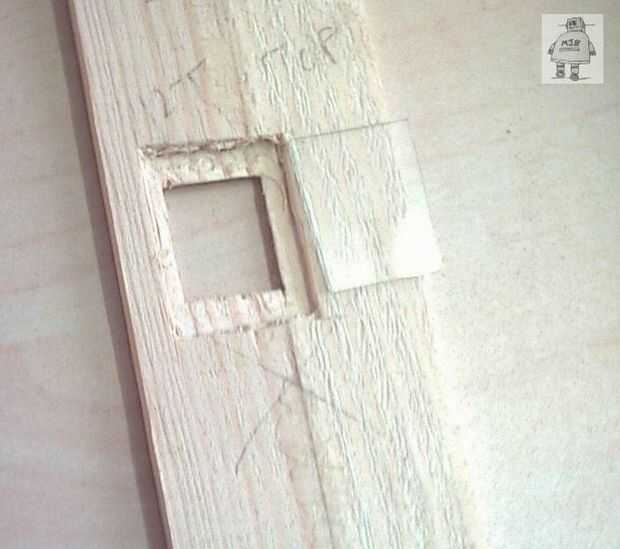 Utilizando el modelo de licuadora que guía, marca en la cámara es vista de "lado" en el lado derecho y la magnitud de la rebaja para el vidrio (que va dentro de la caja). Recorto con una hoja de "cincel" x-acto para bordes aseados, tener molido hacia fuera la mayoría de los residuos con una guía de herramientas de fresado dremel o similar.