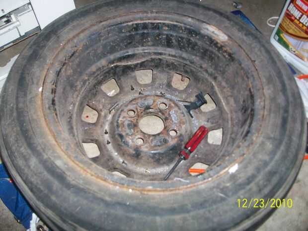 Algo para evitar perforar el piso, mesa, auto, etc. (sólo usé una rueda vieja ya que la tapa ajuste bien sobre él. Aunque hay probablemente mejores maneras, pero estaba en un presupuesto bajo.)