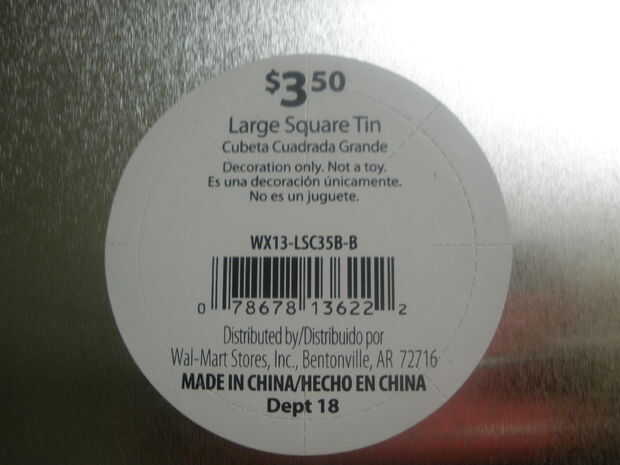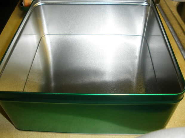 1. estaño (usé lata cuadrada costo: $3,50 más impuestos) wal mart