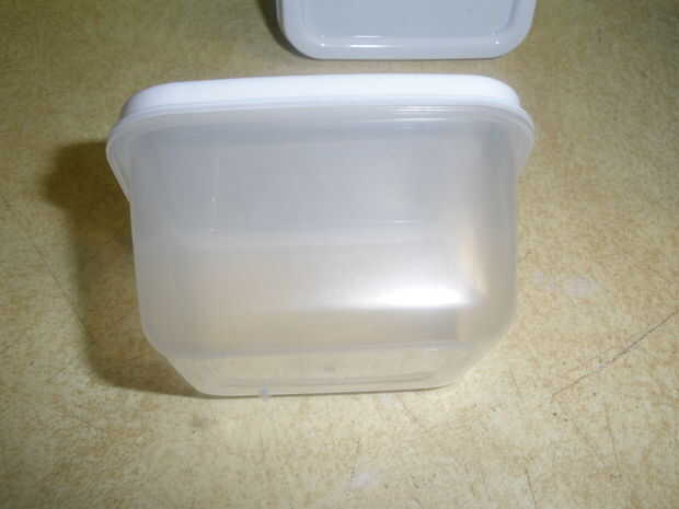 (Tienen que encajar en la lata. Usé uno pequeño. Necesitan no tapper. Si ellos tapper, se moverán de la lata. Este es el duro es encontrar envases que funcionarán en la lata. Me tomó 3different contenedores para encontrar el adecuado.)