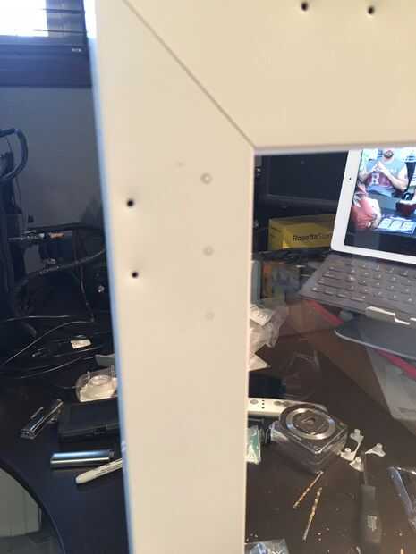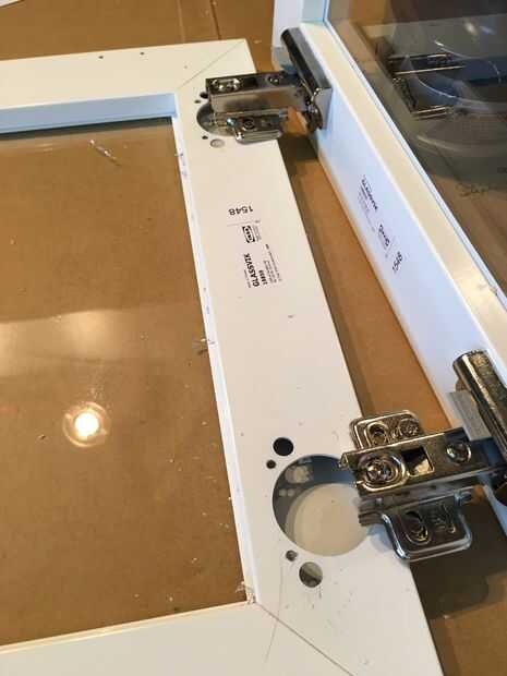 Mientras que usted está construyendo el cuadro de puertas necesita colocar las puertas en maneras que no estaban destinados a ser conectados. Para algunas de las posiciones de la bisagra, que usted será capaz de utilizar el pre corte los orificios y Espiches de plástico para montar al lado de la puerta (parte redonda) de la bisagra. Esto es cómo las bisagras se unen a los dos paneles laterales.