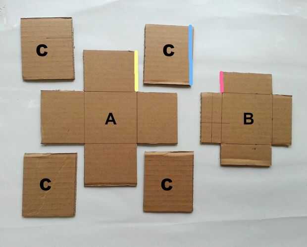 (Caja), B (tapa) y C de como se muestra en la foto de este paso.