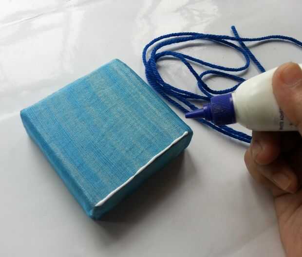 Aplique pegamento a los lados de la tapa y luego pegar el hilo.