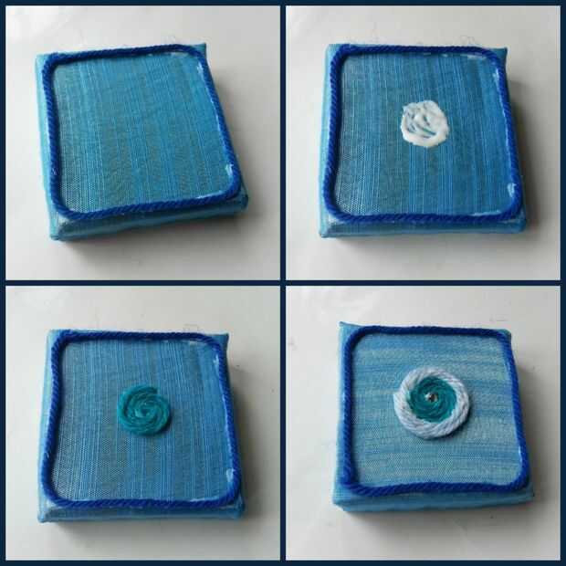 Decorar la tapa con el hilado. Utilice pegamento blanco para pegar el hilo.