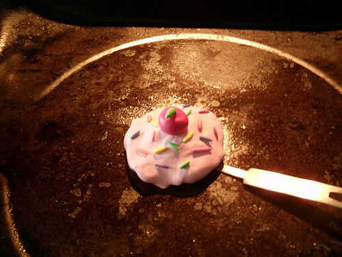 Ahora sería un buen momento para usar eso tazón de fuente pequeño de agua para mojar su dedo y alise cualquier huellas digitales tienes en el helar de la Magdalena o el cerezo. Descuidado hacerlo y tienen que sufrir con las huellas dactilares en la mía que no es una cantidad enorme para mí pero suavizado daría como resultado un producto final mucho más pulido.