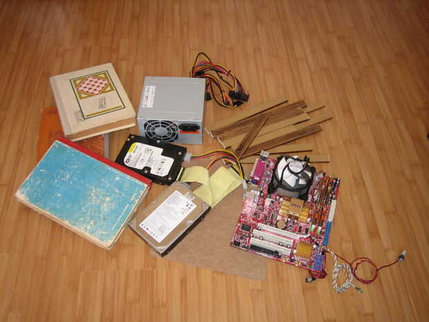 -tuve un core2duo e6700, 4 gigas de ram, 2 discos duros viejos, una placa base mini atx y fuente de alimentación (básicamente un ordenador)