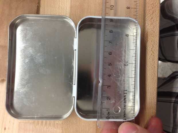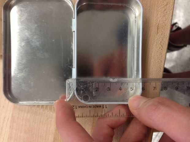 Medir el interior de la caja de altoid, longitud, ancho y con la regla.