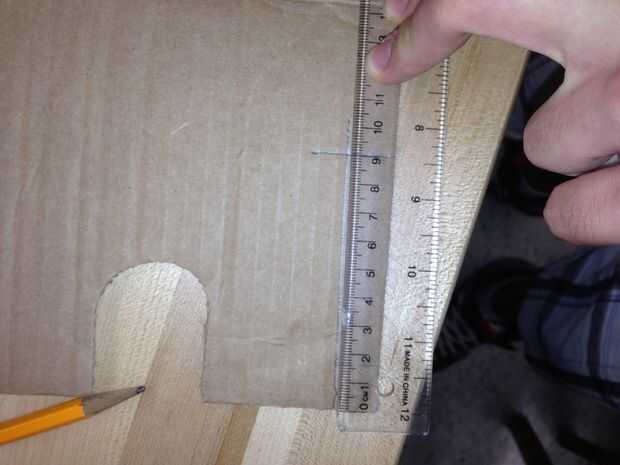 Medir con regla, la primera pieza de cartón y asegúrese de que coincide con la longitud horizontal de la caja y la altura de la caja.
