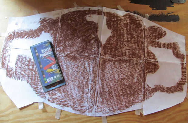 Para transferir la imagen utilicé un trozo de tiza de pastel suave del artista a sombra en el lado equivocado (no impresa) de la plantilla (creación de un papel hecho en casa). Luego coloca la imagen derecha para arriba en la tapa de la caja y había trazado su contorno con un bolígrafo. (sea seguro en cinta la plantilla en su lugar con cinta adhesiva para que no se deslice mientras que usted está describiendo.)