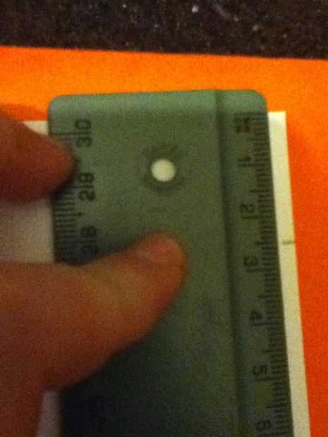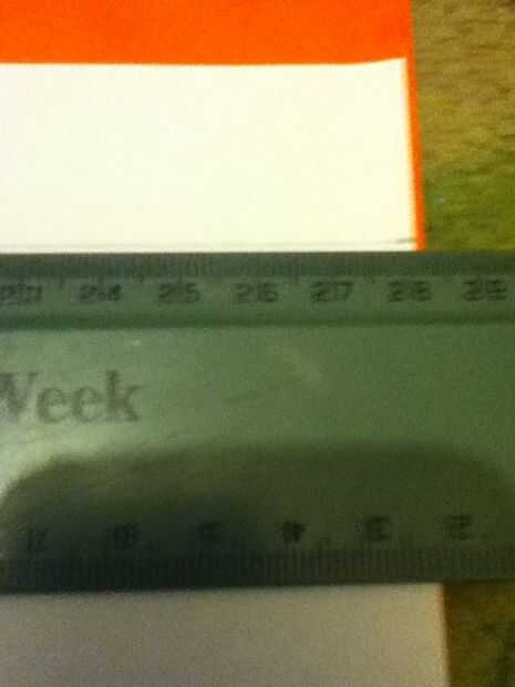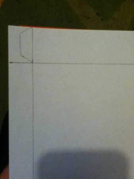 Luego mida 28cm por la derecha en la parte superior e inferior y trace una línea vertical allí. Debe ser un rectángulo pequeño corte apagado en la esquina superior izquierda, así que sacar una ficha en la.