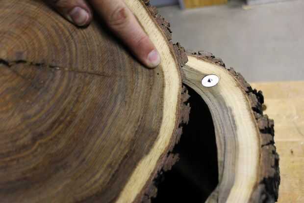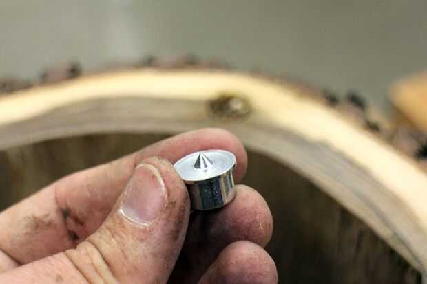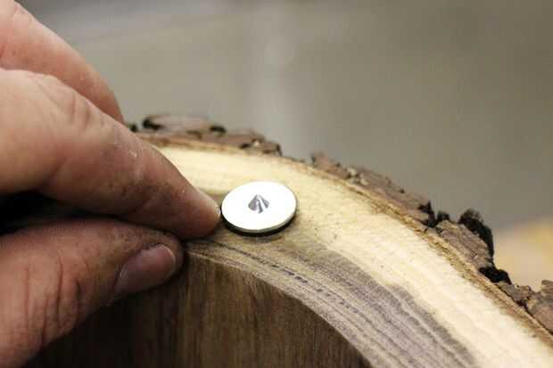 Para transferir la posición del pasador del muñón en la parte superior puede utilizar un centro de taco marca herramienta. Estos discos baratos se insertan en la abertura con los pines apuntando hacia arriba, alinear tus piezas y presione hacia abajo sobre el perno que transfiere el centro a la superficie de acoplamiento.