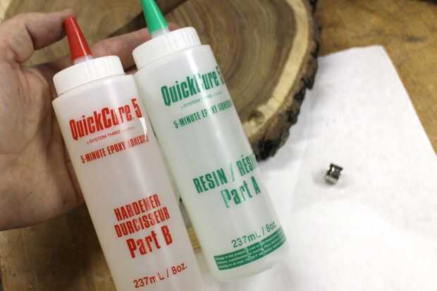 Para sujetar los imanes en su lugar utilicé un epoxy de 2 parte.