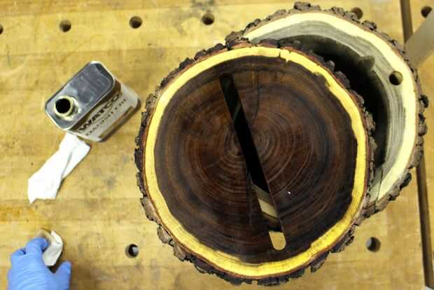 Después de lijar limpiar unas cuantas capas de Aceite danés para sacar el color de la madera. Acacia negra se ve un poco aburrida cuando sin terminar, con unas capas de aceite danés creo que le queda rico y sorprendente.