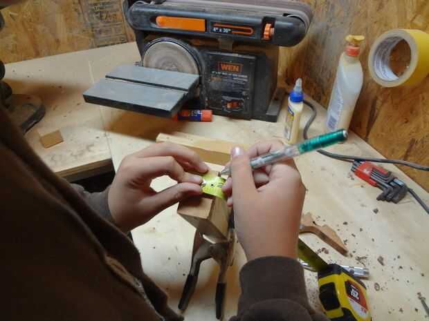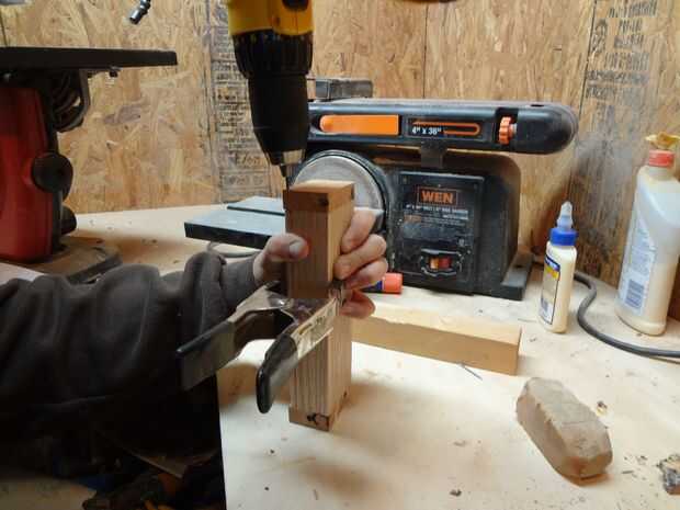 Redondo sobre el borde posterior de la tapa en una lijadora o router. Sujete la tapa en su lugar y con una broca de taladro de columna un pequeño orificio en cada extremo de la caja en el extremo de la tapa. Si los orificios no están lo suficientemente profundos, los más profundos perfore con un taladro inalámbrico. Encontrar algunos clavos que encajan perfectamente en los agujeros y les toque hasta que queden al ras.