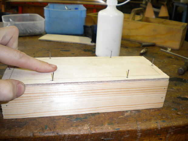 Las uñas la base y colóquelo en la parte inferior del bastidor (lado sin los canales) cuando la base está cubriendo todo del marco pin que en su lugar. No es necesario usar PVA en la base pero se puede si lo desea.