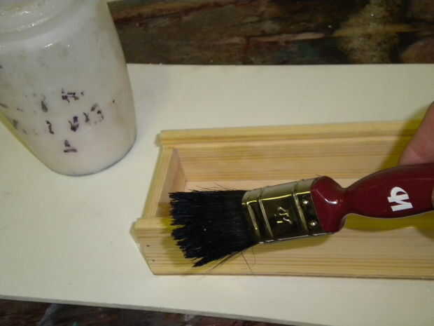 Ya está terminado el trabajo de madera, después de lijar barniz los lados para proteger la caja de lápiz de manos mugriento. Barniz de poliuretano es ideal para el aula ya no tiene humo y los pinceles se pueden limpiar en agua tibia. Se debe quitar la tapa y prevenir barniz entren en los canales. Su pena explica a los estudiantes sobre el uso de un pincel bien para evitar manchas y gotas.