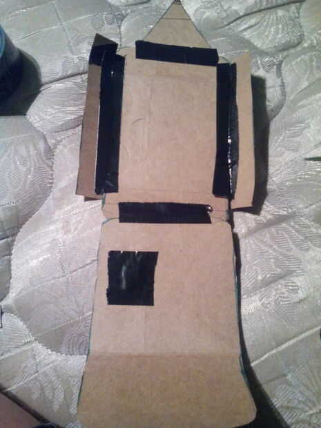 y luego cubrir completamente con cinta adhesiva. En la parte donde se graba en lugares al azar, no es necesario hacerlo, había agujeros en mi cartulina.
