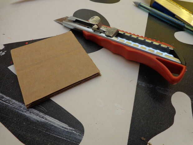 empecé con una caja de cartón. Cortar un cuadrado de ella (7,5 x 7,5 cm).