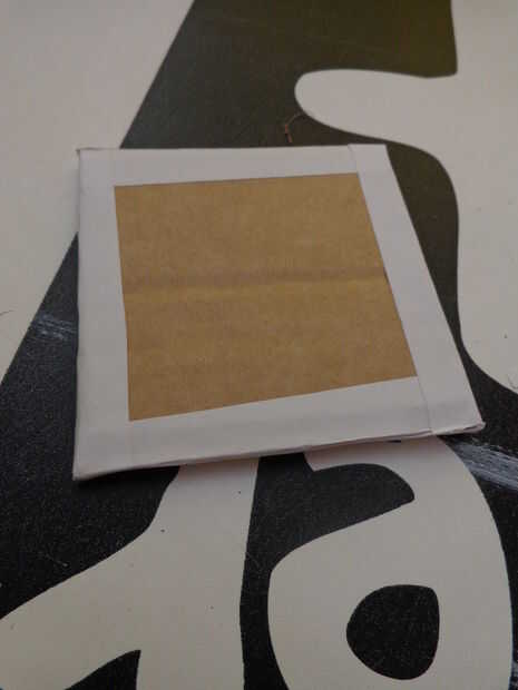 Reforzó la plaza con algunos trozos de papel adhesivo y luego pegar una foto de un cuadro de Joaquín Torres García. Se trata de la parte inferior de la caja.