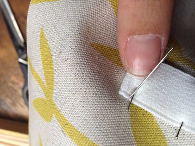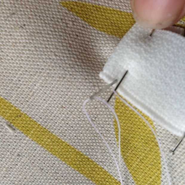 • comenzando en la parte posterior de la tela - Hale la aguja a través de como cerca de la tela como sea posible y luego hacer un pequeño palo de corriente, como usted podría usar para coser un botón. Repetir 3 o 4 veces para que lo que es seguro. seguir al otro lado y repita.