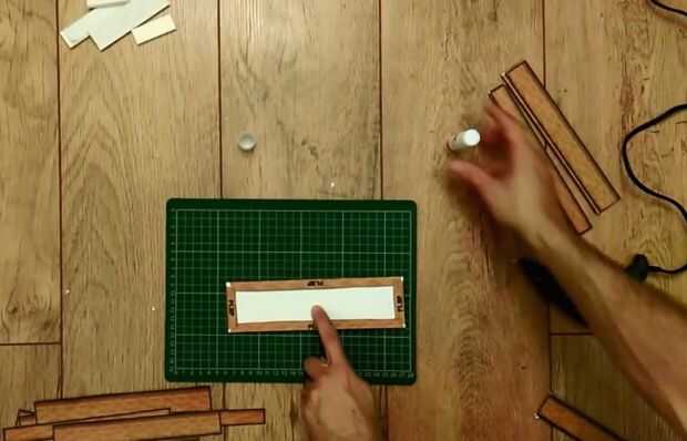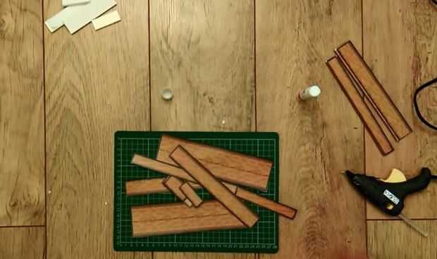 A continuación, agregue el pegamento en las lengüetas y doblar alrededor de los bordes de las piezas de cartón pluma.