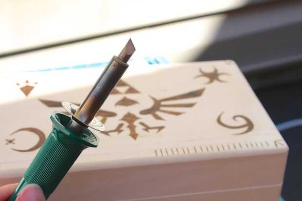 Dejar que la leña calor la pluma para arriba mientras que el patrón en la caja oscura.