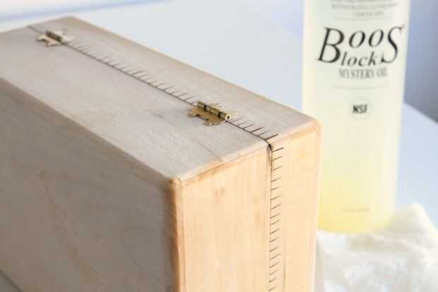 Porque quería mantener un alto contraste entre el color de la caja y la leña, decidí simplemente la madera en lugar de manchas de aceite. Misterio de Boos el aceite usado desde que tuve en mano.