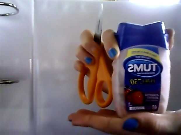 Meter la bolsa en la parte inferior, una botella de tums y un pequeño par de tijeras. Tu set!