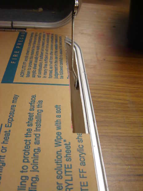 Utiliza una sierra caladora para cortar el radio de las esquinas y la ranura para el soporte de la tapa.