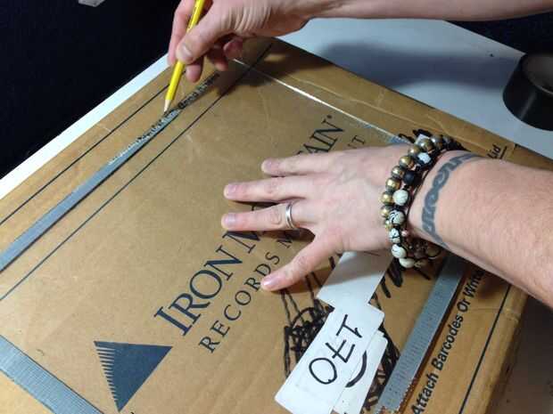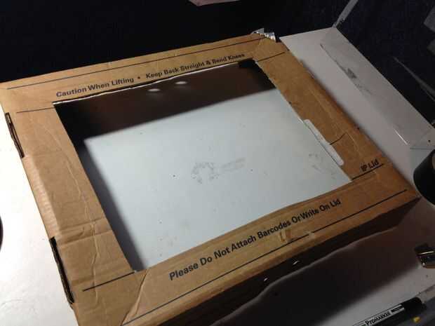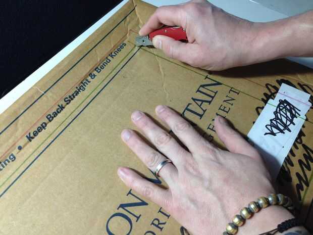 Coloque su hoja de cristal encima de su caja y cuidadosamente traza los cantos (aquí marcado en rojo para facilitar su identificación) pensando que si el uso de vidrio puede ser sostenido alrededor de los bordes
