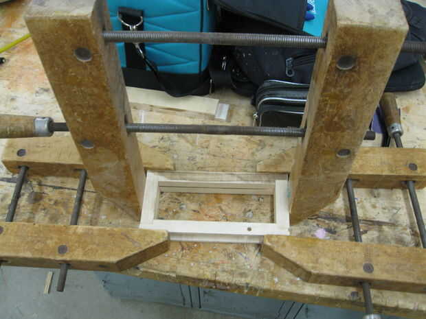 Después de que el pegamento esté seco, quite las abrazaderas y quite la parte superior y el panel de vidrio.