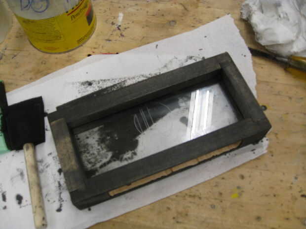 Manchado el ébano fram, y aunque muchas personas dicen no mancha arce bueno, particualrtly ha gustado la textura de grano gris oscuro que resultó de ella. Si alguna mancha se obtiene en el panel de vidrio, use solvente de laca en un paño suave y limpie el cristal con él.