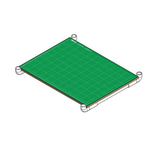 6. Colocar la base de PVC sobre la hoja MDF; céntrelo.