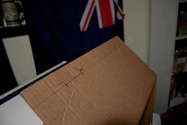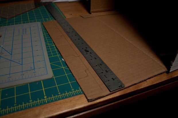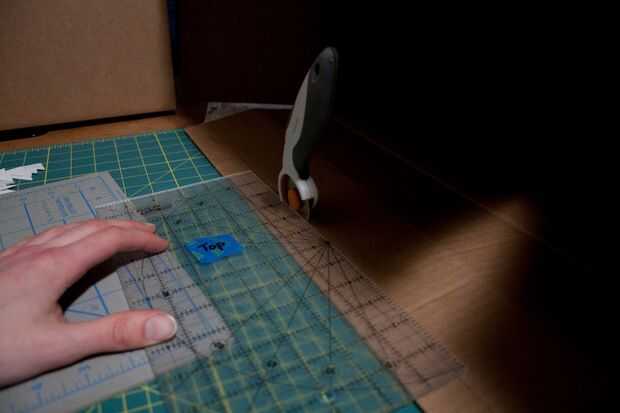 3. use su regla para doblar un pliegue recto agradable en la tapa de la caja (aleta debe ser doblado hacia afuera)